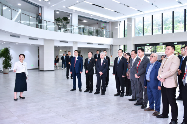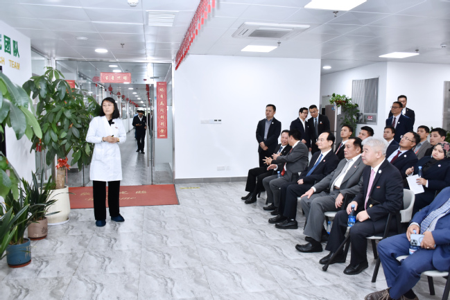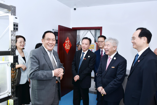 11月17日下午,来华参加“2025中国-东盟周”的马来西亚国会上议院议长阿旺·比米率团来校访问,考察我校农林生物安全全国重点实验室和海峡联合研究院,实地了解我校最新农林科研成果、技术推广及社会效益等情况,并探讨有关合作事宜。省人大常委会副主任林宝金、省人民政府外事办公室副主任黄劭蓉等陪同访问。校党委书记赖海榕、副校长郑宝东会见嘉宾并陪同考察。