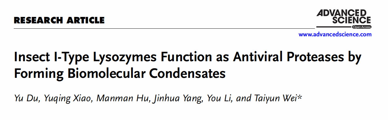 Adv. Sci.|我室魏太云团队发现虫媒溶菌酶的抗病毒机制